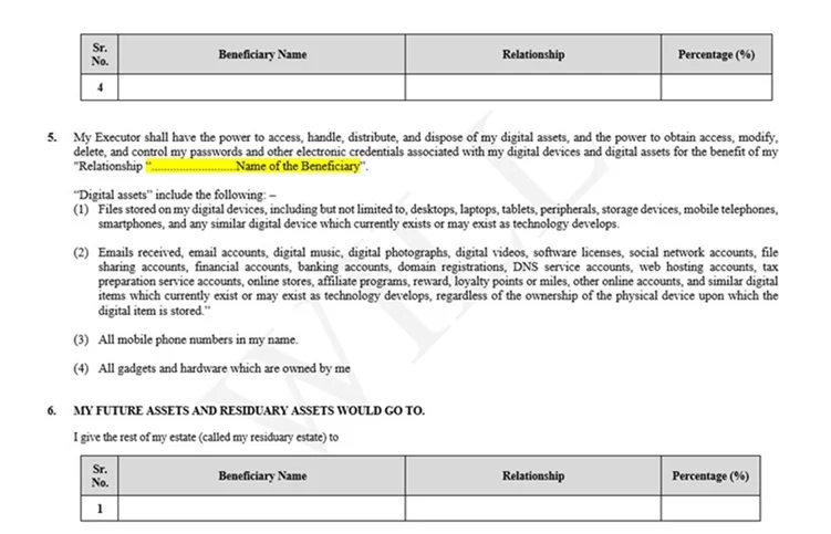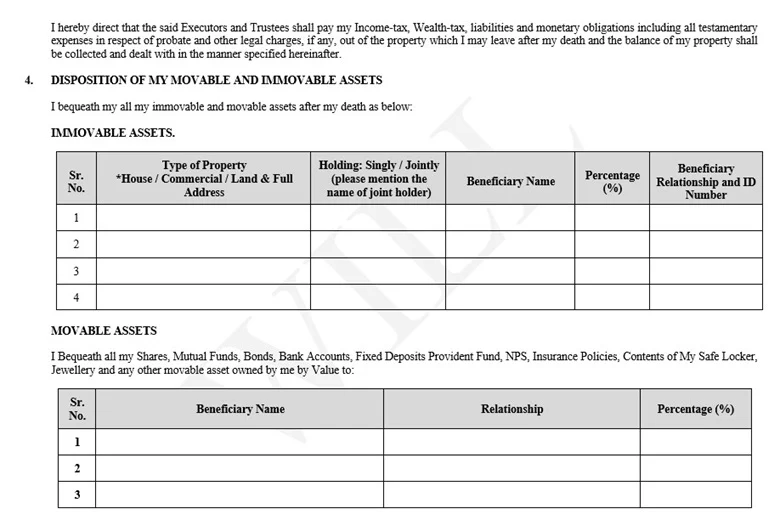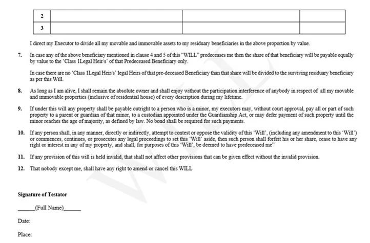 - The Will should clearly outline your assets and how you want them distributed among your beneficiaries.