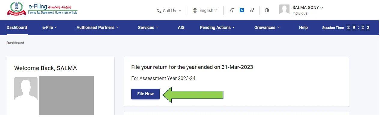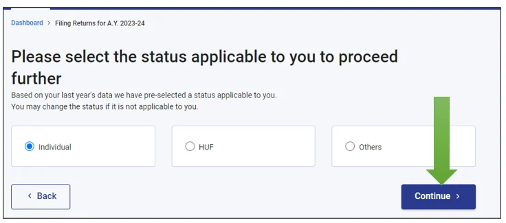 ⚠️Note: The screenshots below are for AY 2023-24. You must select the appropriate AY when filing.