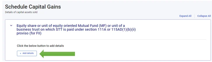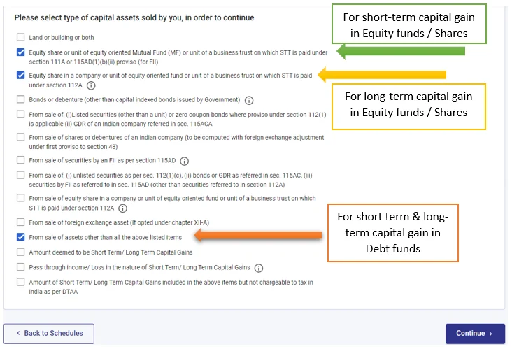 Having Capital gain income from equity mutual funds or shares, checkmark the option below and proceed.