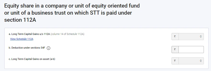 Select, Equity share in a company or unit of an equity-oriented fund or unit of a business trust on which STT is paid under section 112A