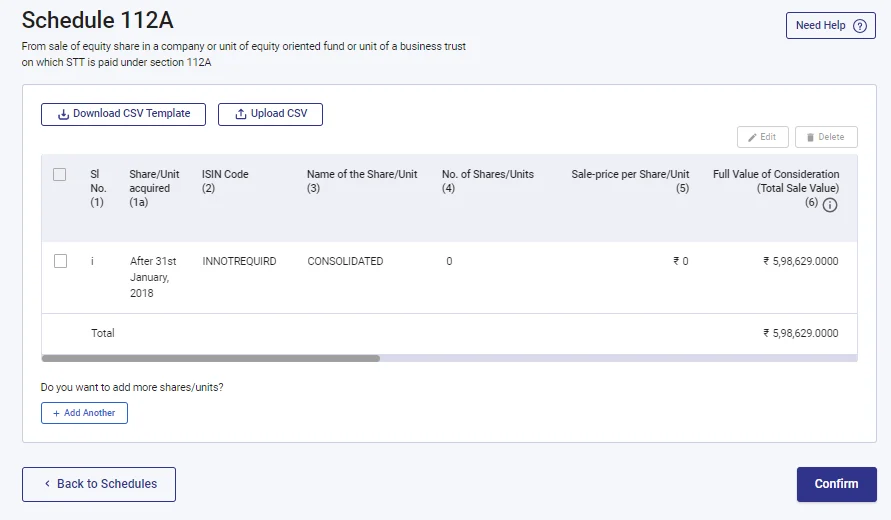 - As mentioned, the capital gain form is the same in ITR-2 & ITR-3.