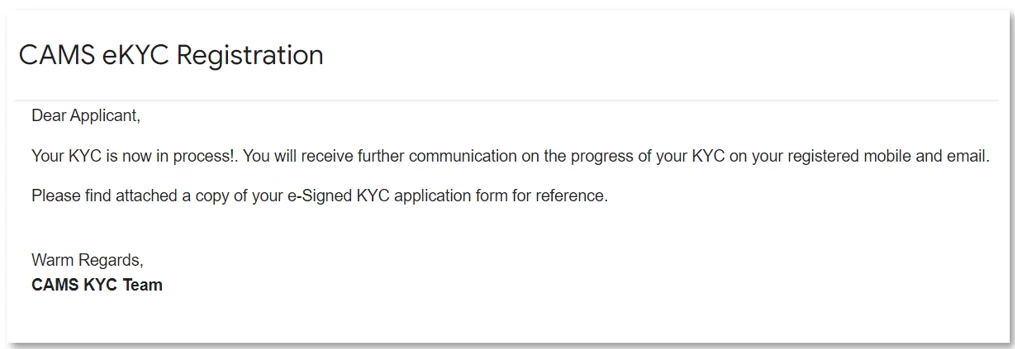 Now, it’s time to relax and wait for CAMS to reply. Your eKYC registration confirmation email will come in a day if all is well.