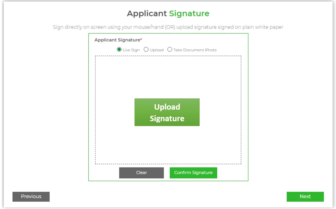Step-8 Upload Signature, confirm the signature and proceed by clicking next.