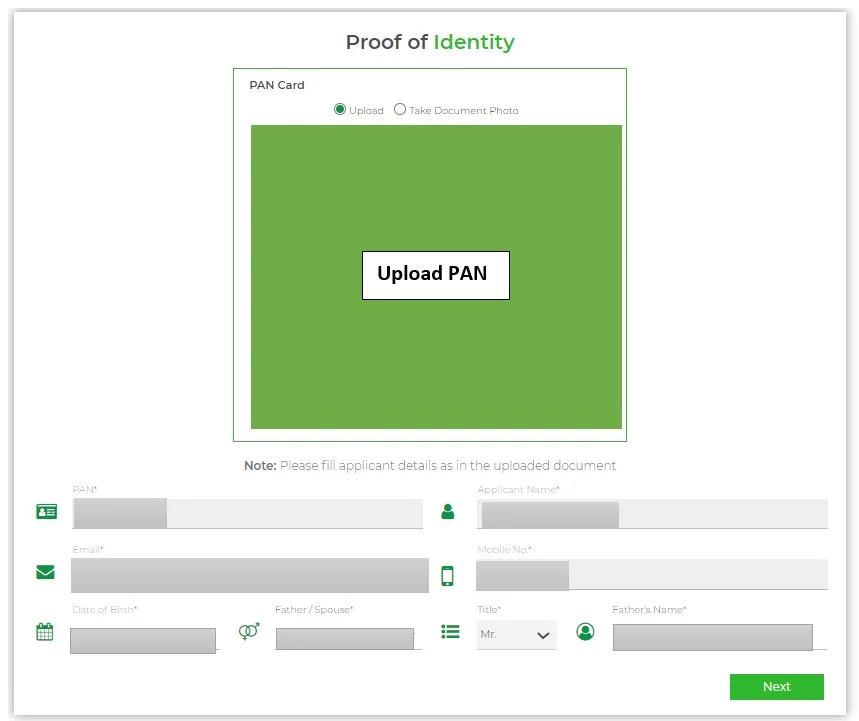 Step-5 Upload PAN photo, and all the data will be automatically fetched, then verify the data and proceed.
